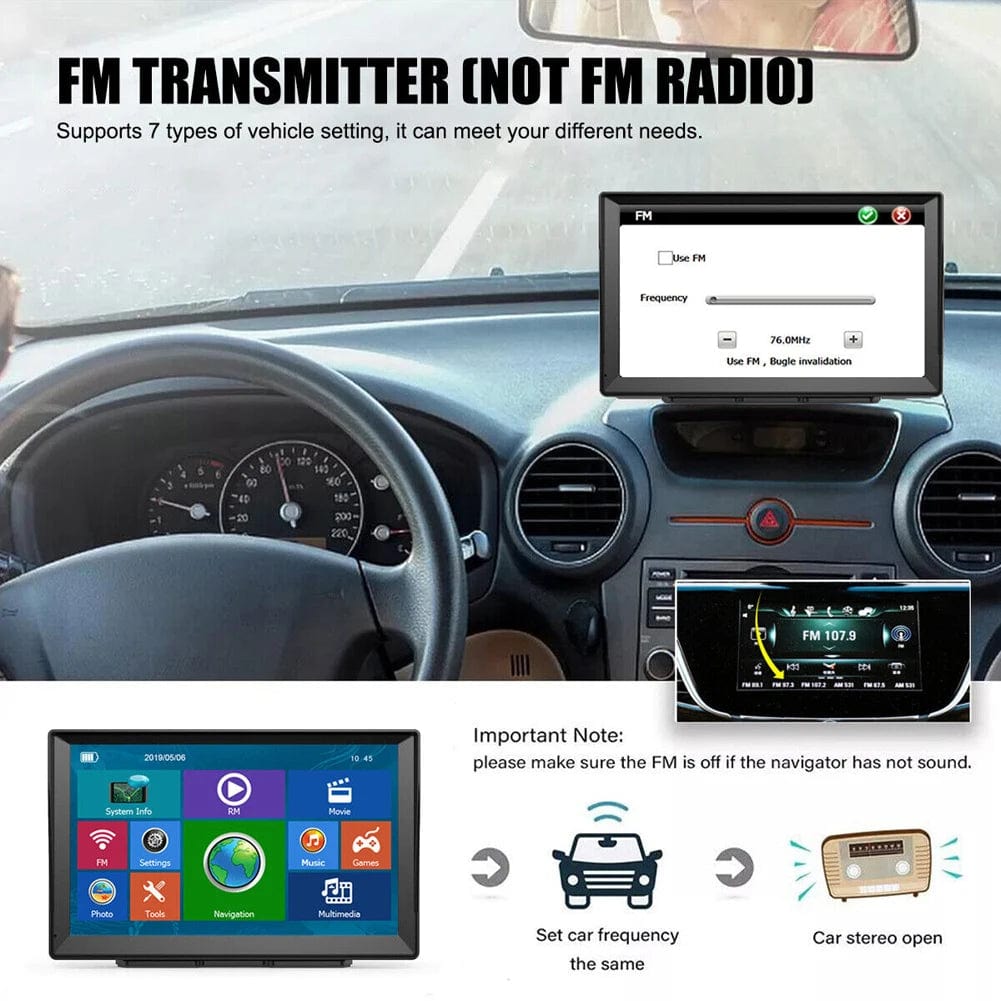 This car monitor comes with a built-in high-quality speaker and FM transmitter functionality, allowing you to connect it to your car stereo for audio output. It also includes various multimedia players, enabling you to enjoy music, videos, images, and even e-books while on the road. The 9-inch large screen ensures clear display and easy readability of driving routes.