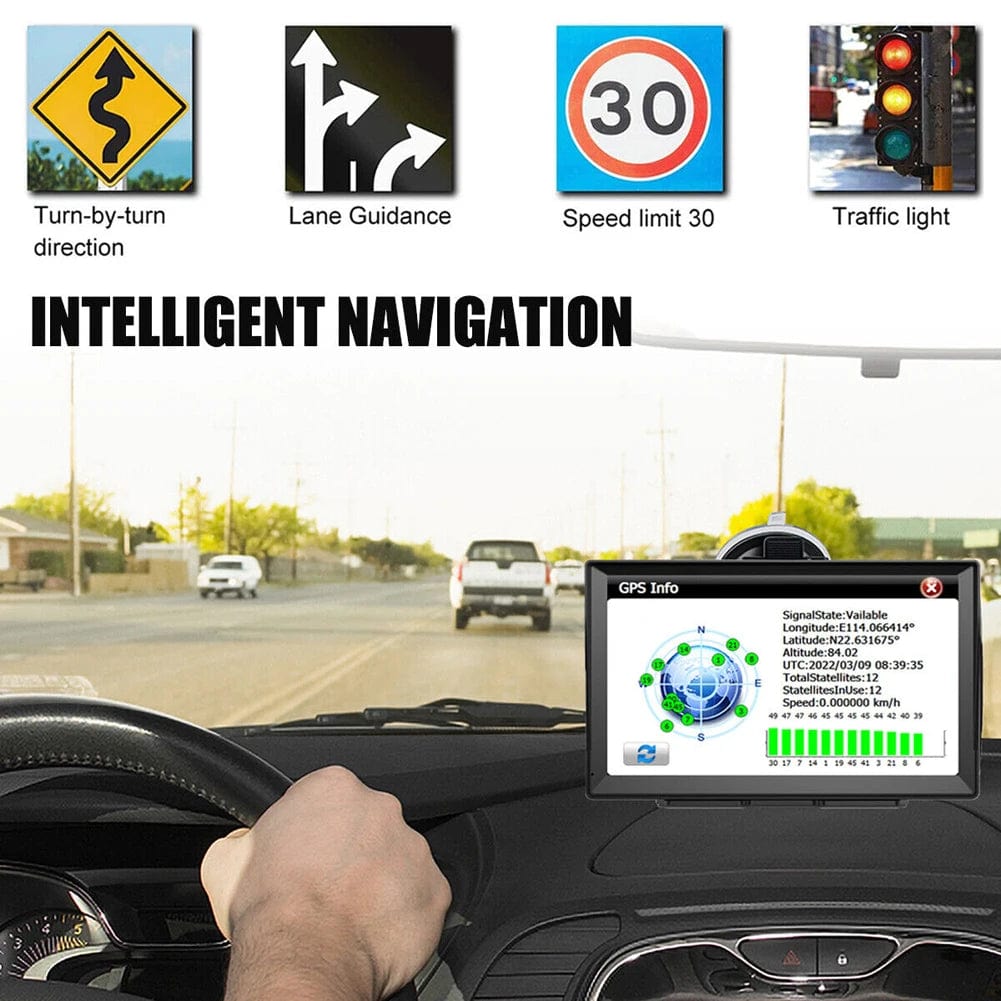This car GPS navigation supports various vehicle types, including cars, bicycles, ambulances, buses, taxis, and trucks. By setting the vehicle type, the GPS will automatically provide information on length, width, height, and weight restrictions specific to your vehicle.