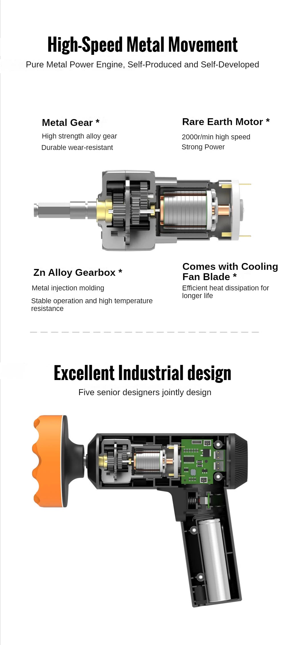 High speed, high efficiency with low noise, fine durability and provides long service time.