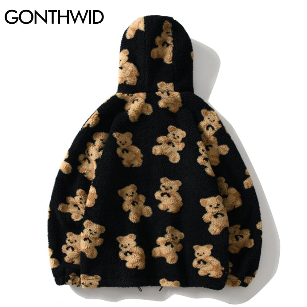 Pattern: Bear vintage streetwear loose coat bomber warm jacket