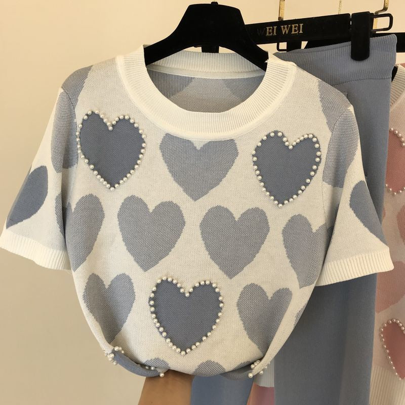 Short knit T-shirt: knit sweatpants