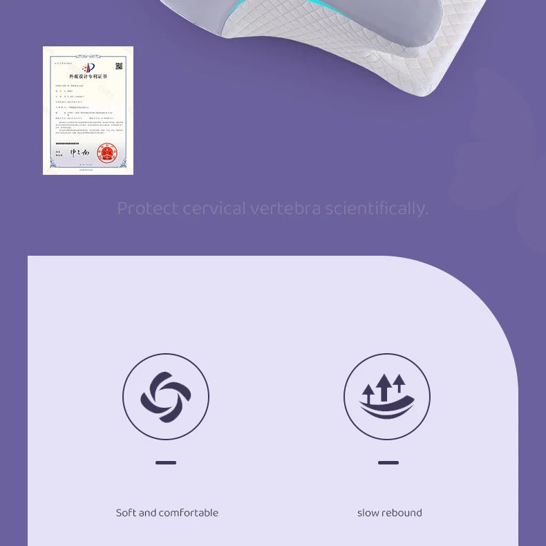 2. The pillow surface and sides are contoured to meet your various sleeping positions, can fit the head well, so that the cervical spine in sleep completely relaxed, unique design of the let go position, so that the shoulders more comfortable, so you quickly into a deep sleep