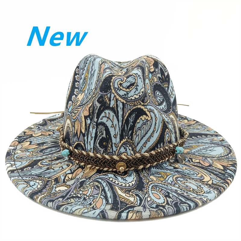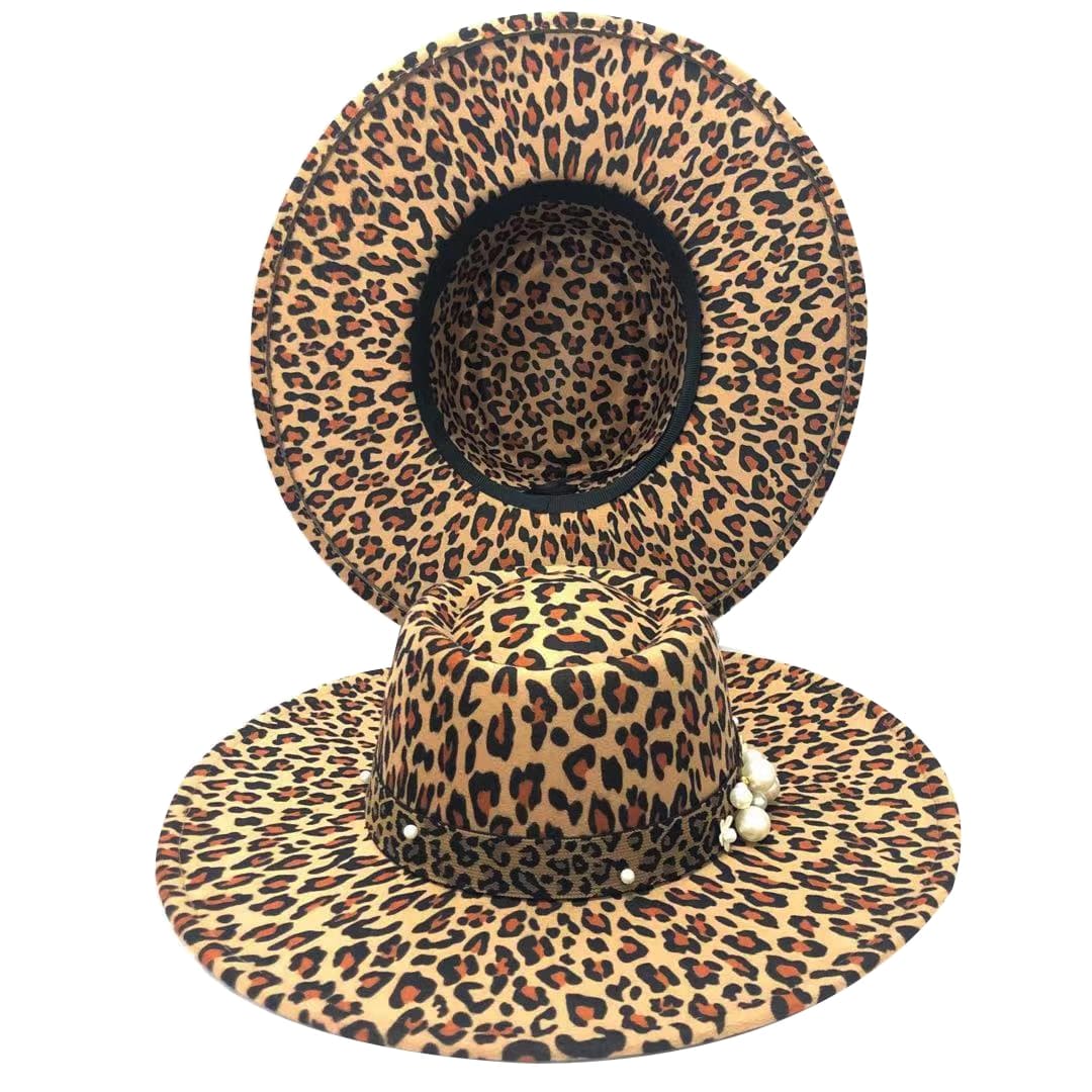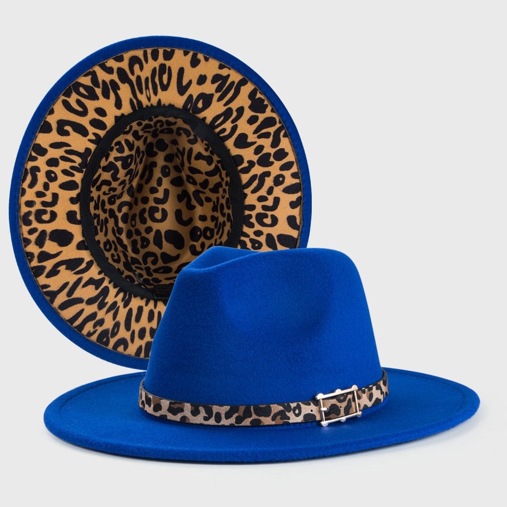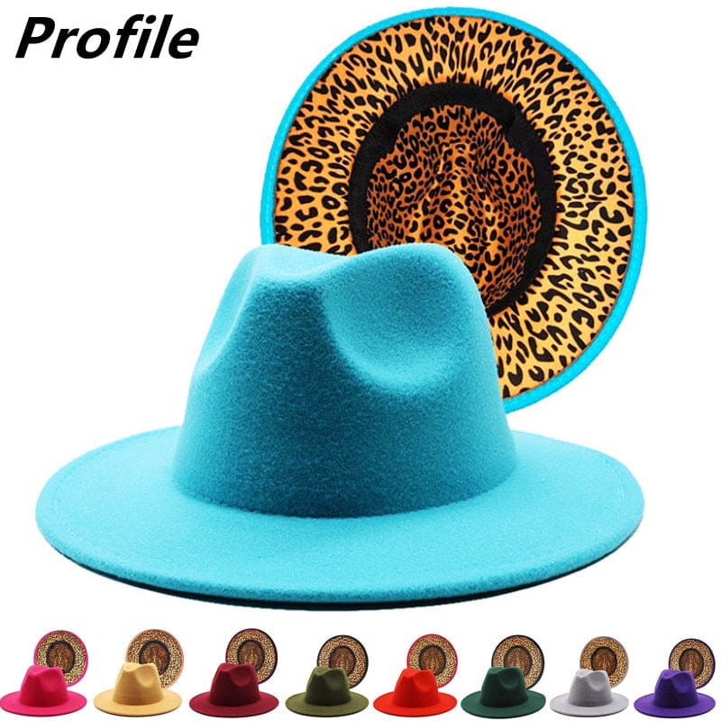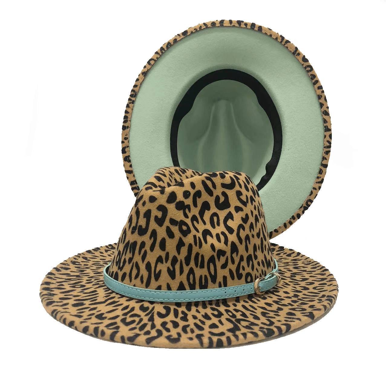 Design: Lake blue fedora hat new leopard print hat adjustable