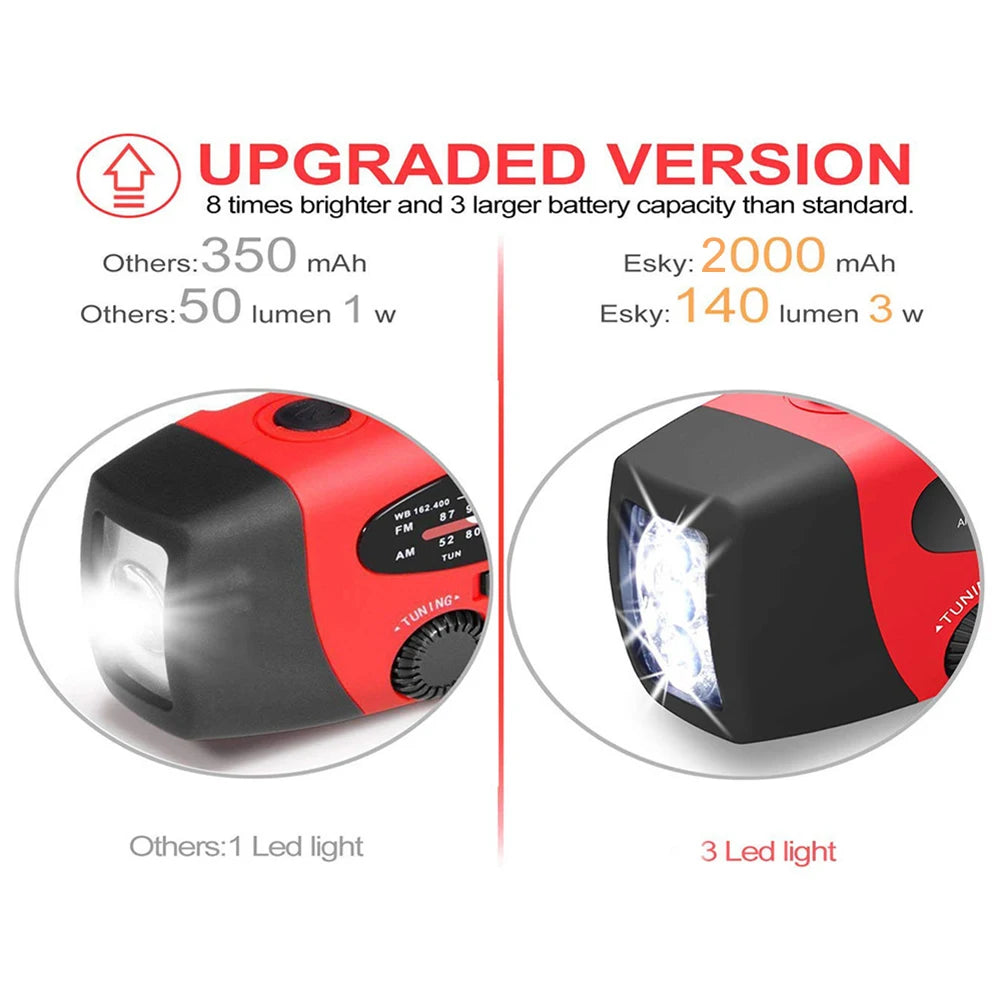 2. Multifunctional: Weather Radio, 3 LED flashlight, power bank