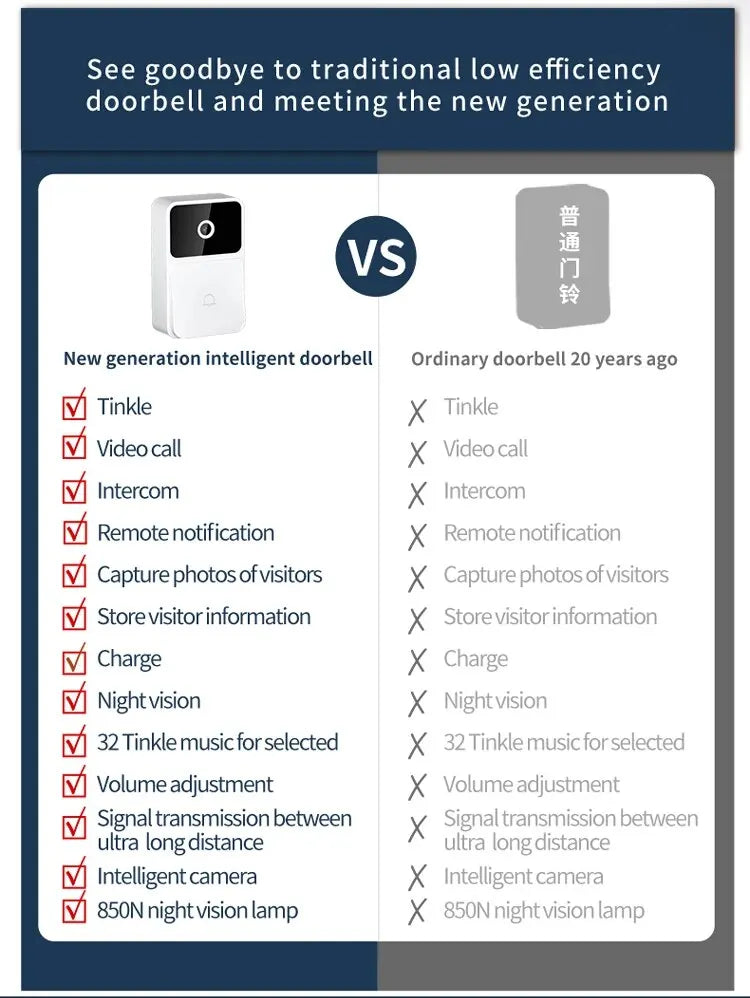 • Wireless Connection: No need for complicated wiring, the doorbell connects wirelessly to your home network.