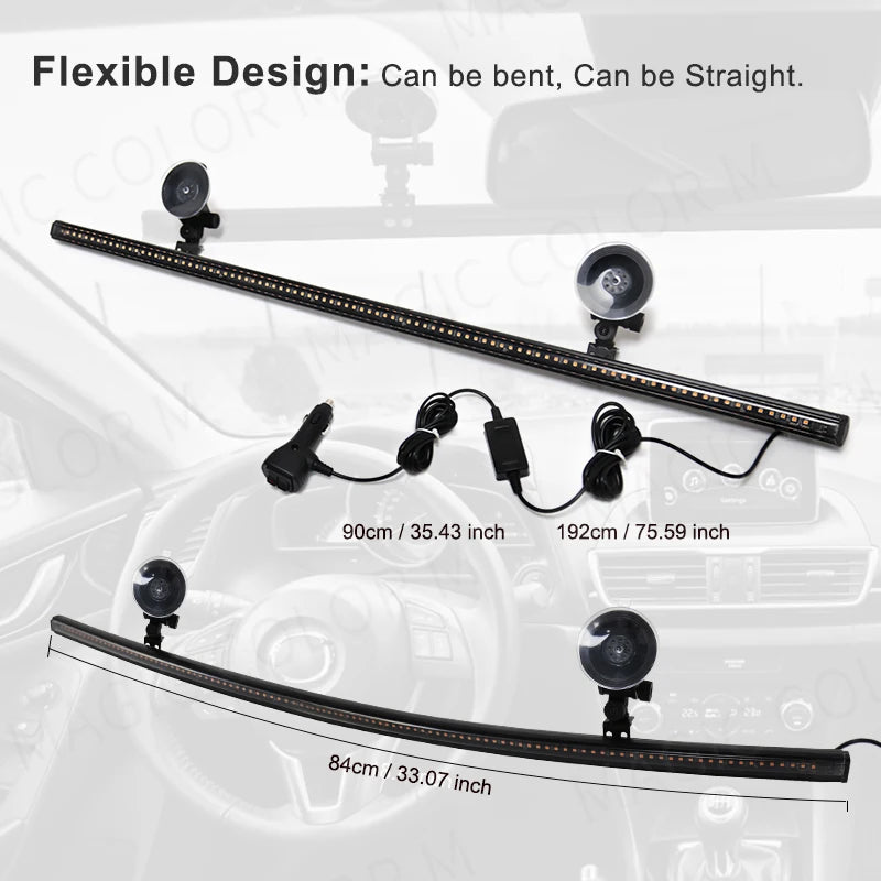 Car Front Windshield Warning Light 96 LED 3030 Beads Strobe Lamp Bar Traffic Signal Emergency Flashing Lamp 12-24V Yellow Blue